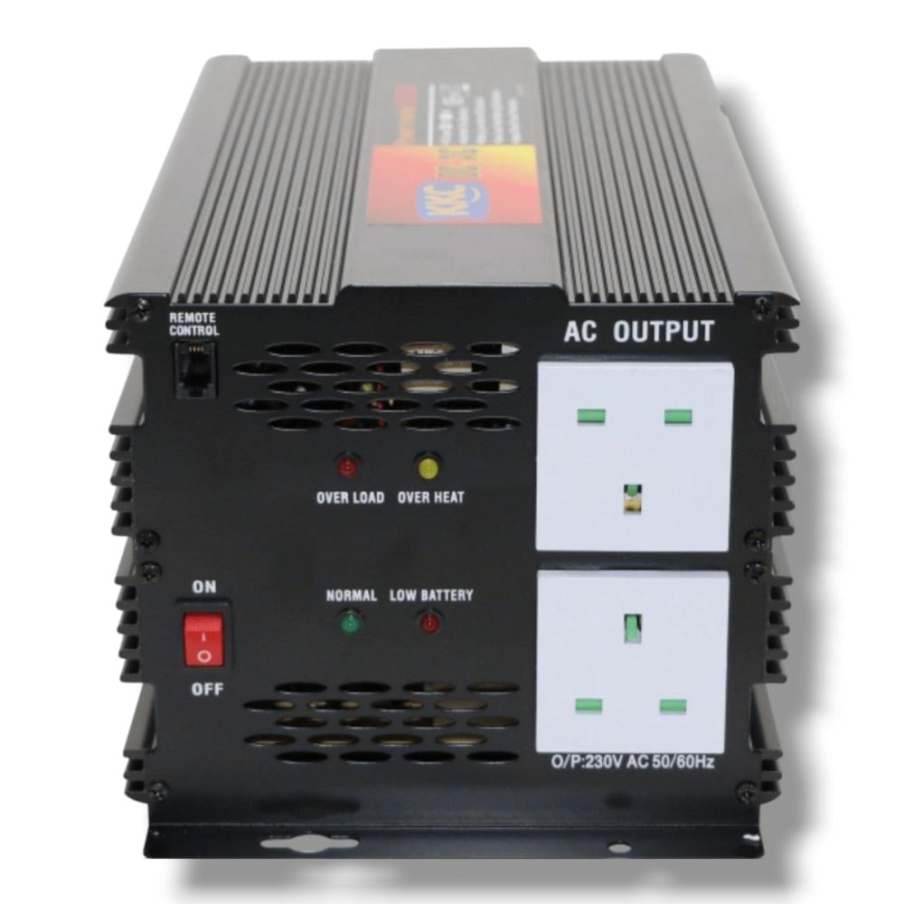 محول طاقة شمسية تايواني 4000 واط/ 24 فولت تبديل خط التيار المتردد تلقائيًا تشغيل تلقائي للمروحة جهد الاخراج : 230 V القوة : 4000 W الهرتز : 50 / 60 Hz صوت إنذار انخفاض البطارية وإغلاقها إنذار ارتفاع درجة الحرارة الضمان: سنتين